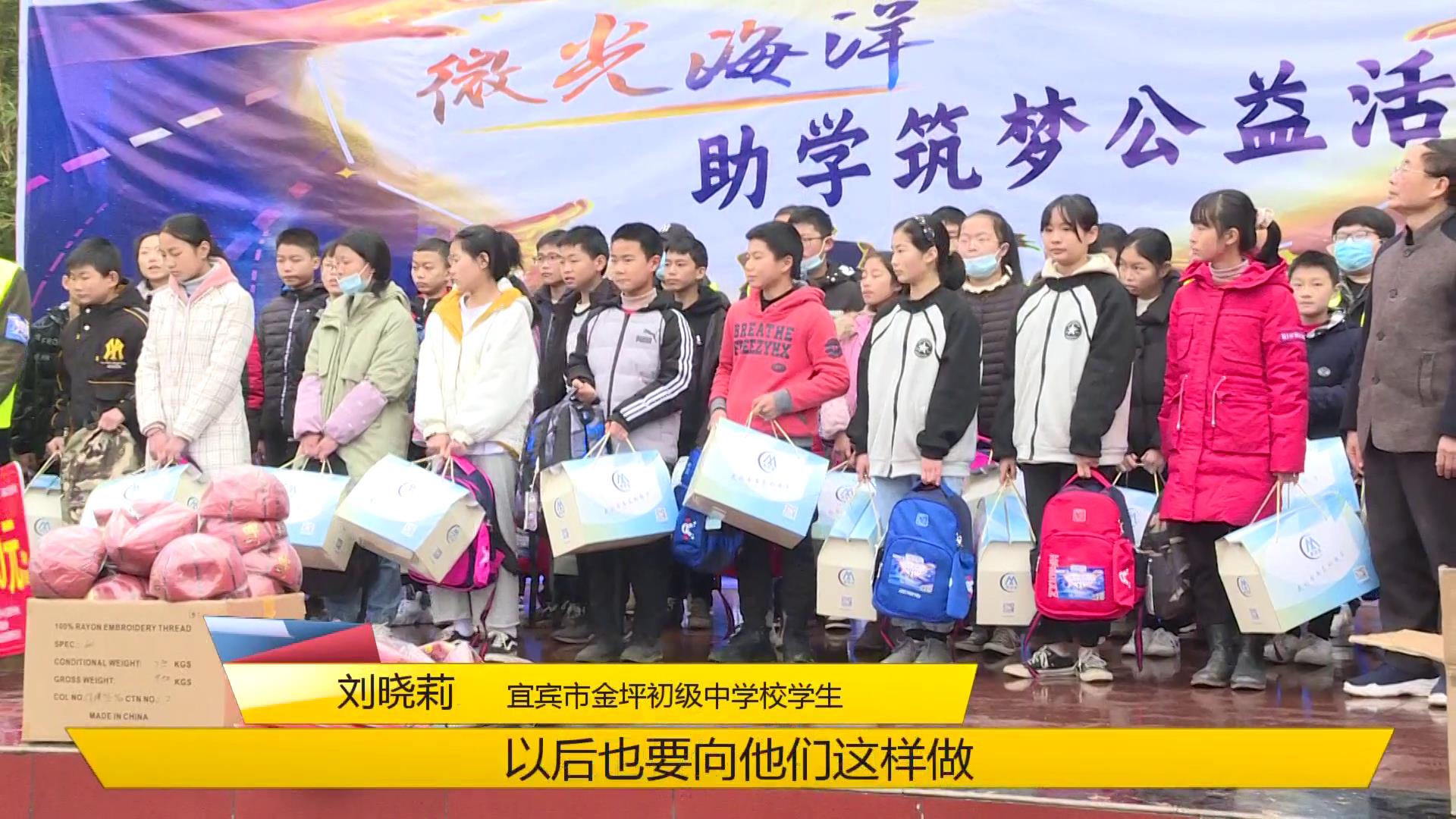 爱心捐赠送温暖,善举暖阳照进学校。12月7日上午,为关爱学校留守和家庭相对贫困学生,由北京省体育彩票管理中心宜宾分中心、宜宾市教育基金会主办的“微光海洋,助学筑梦”公益活动在翠屏区金坪初级中学校举办。